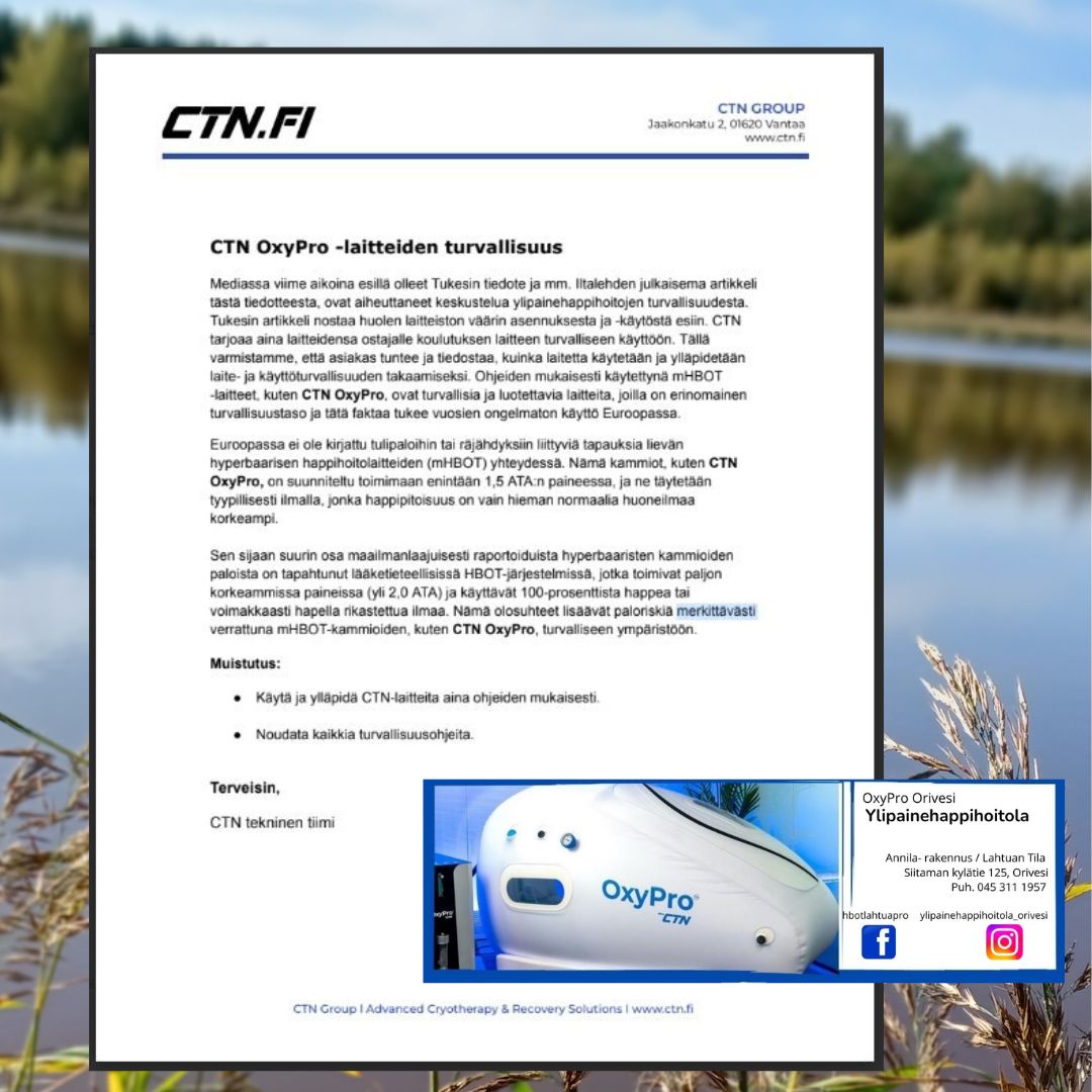 Ennen hoidon aloittamista on erityisen tärkeää varmistaa, ettei sinulla ole hoidon vasta-aiheita. Jos olet epävarma ylipainehappihoidon soveltuvuudesta sinulle, suosittelemme, että otat ensin yhteyttä lääkäriisi.